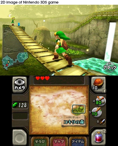 Vint le tour d'une dernière fonctionnalité qui plaira à beaucoup : la prise de photo. Celle-ci était déjà présente sur la DSi, mais avec l'ajout de la deuxième caméra et un placement parfaitement pensé, les photos sont prises en 3D, et il sera possible de les revoir aussi bien sur l'écran de la 3DS que sur un écran de TV 3D, ou sur tout autre appareil permettant la visualisation d'images, bien que dans ce cas, elles seront bien sûr en 2D. Il est à noter durant cette présentation que l'on pouvait constater que le menu de la console bénéficie lui aussi d'effets 3D, et qu'il est possible à tout moment de venir dans le menu de la console, ce qui met le jeu en pause en arrière plan, jusqu'à la reprise de la partie.